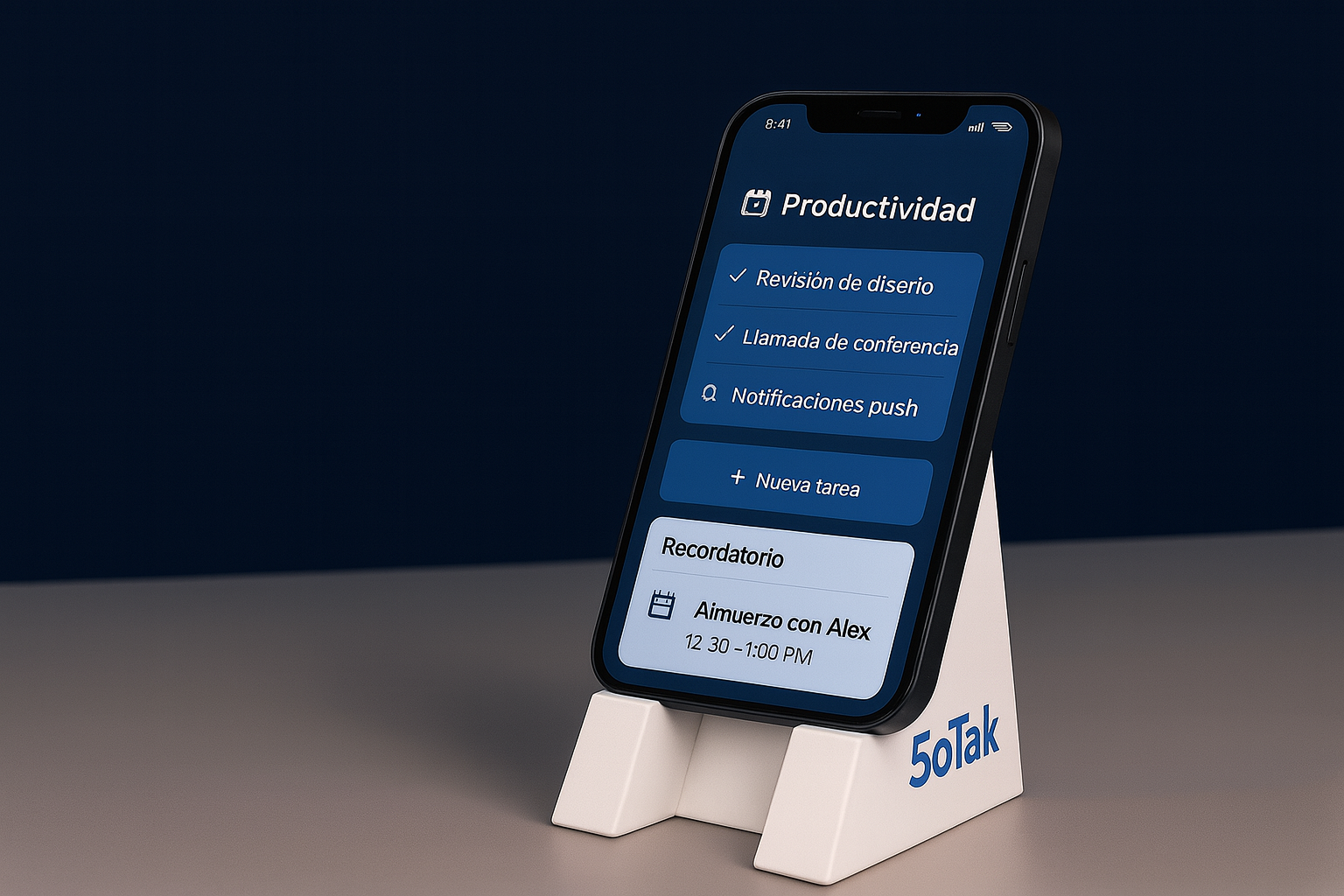 Apoya tu móvil y deja que 5oTak haga el trabajo por ti. Productividad, descanso y organización…